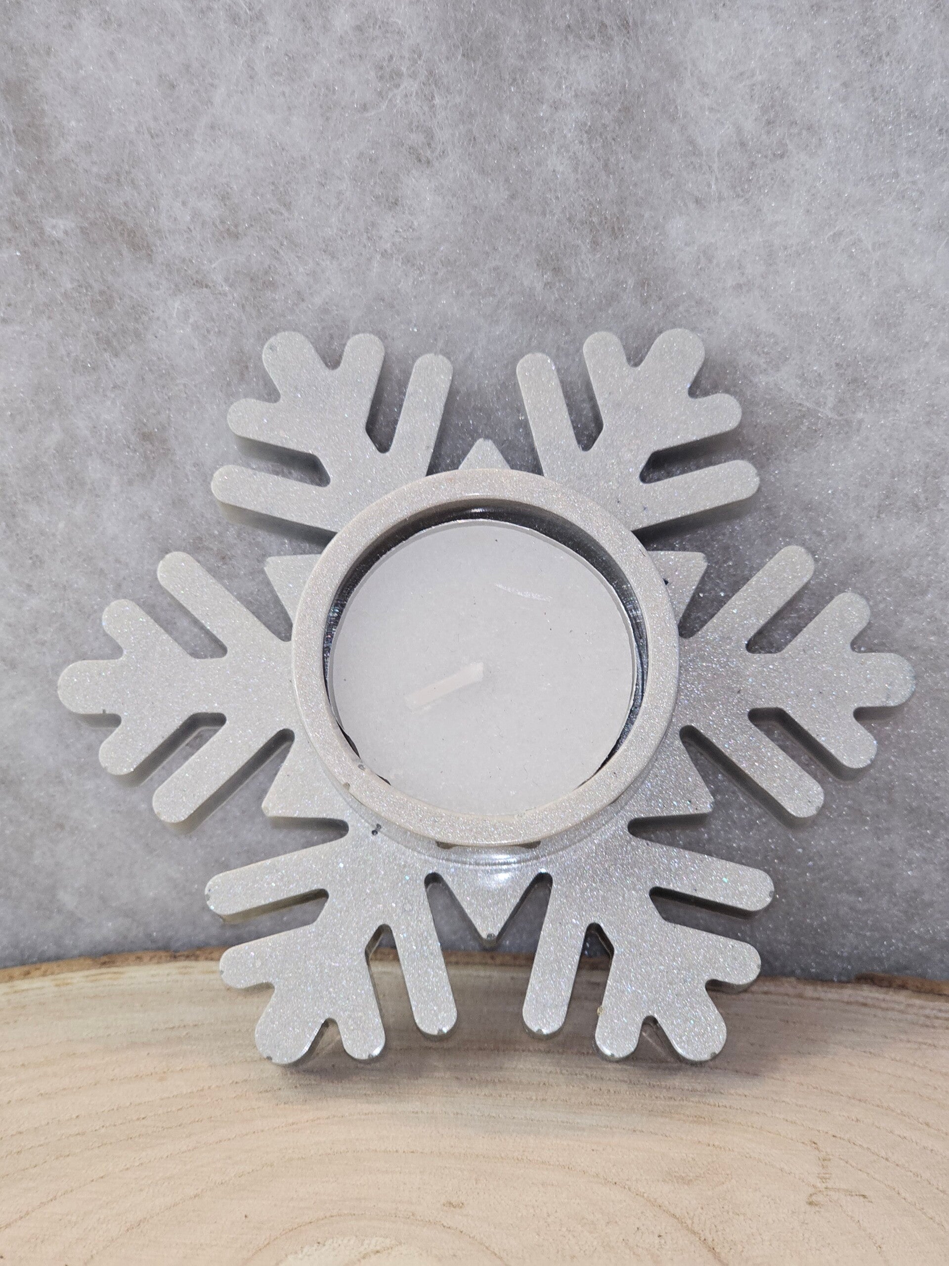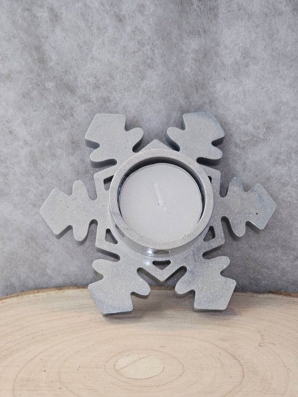 Apportez une touche féérique à vos soirées avec ce bougeoir en forme de flocon de neige. Entièrement réalisé à la main en résine époxy, il présente une belle finition argentée légèrement scintillante qui reflète la lumière de la bougie pour créer une ambiance chaleureuse et hivernale.