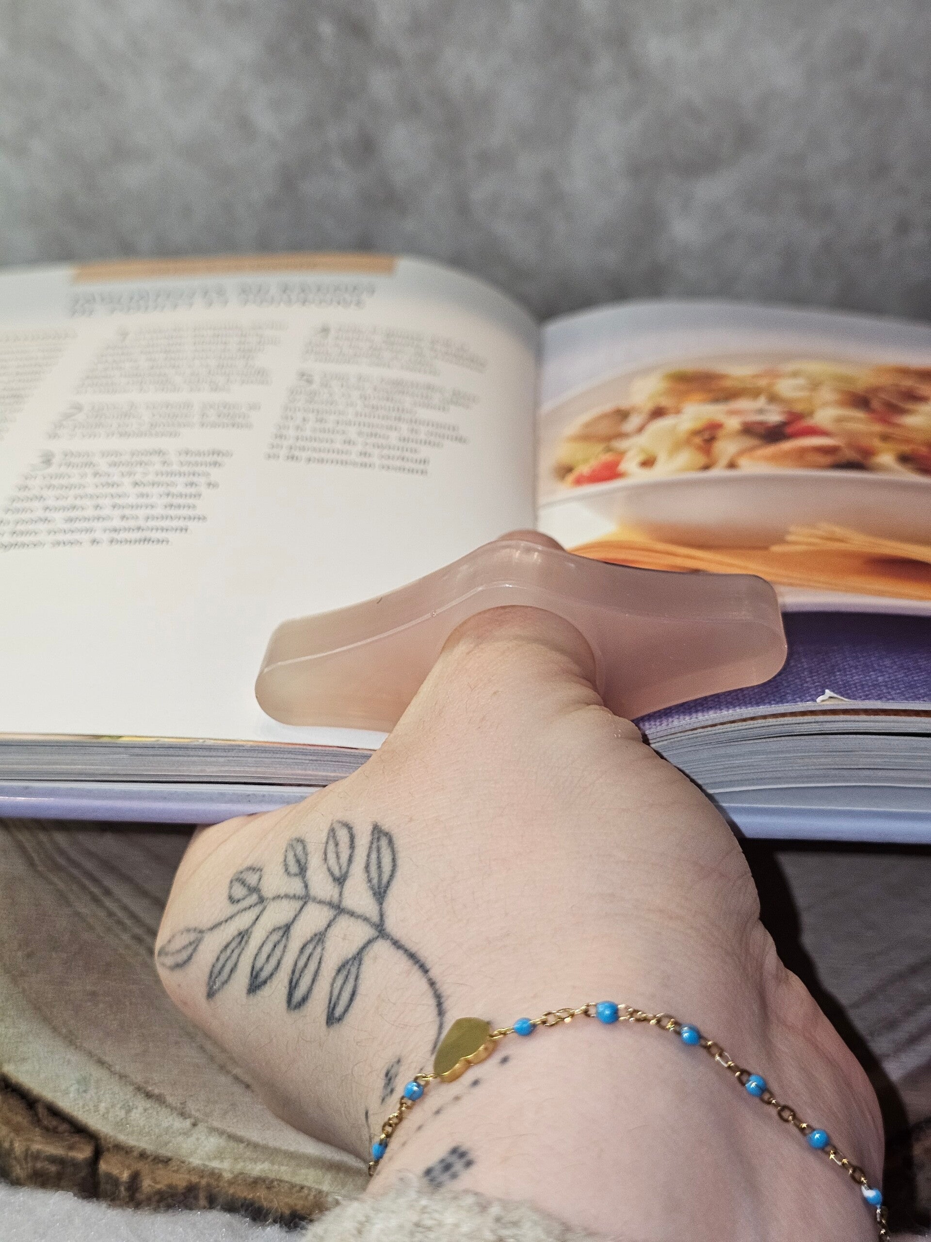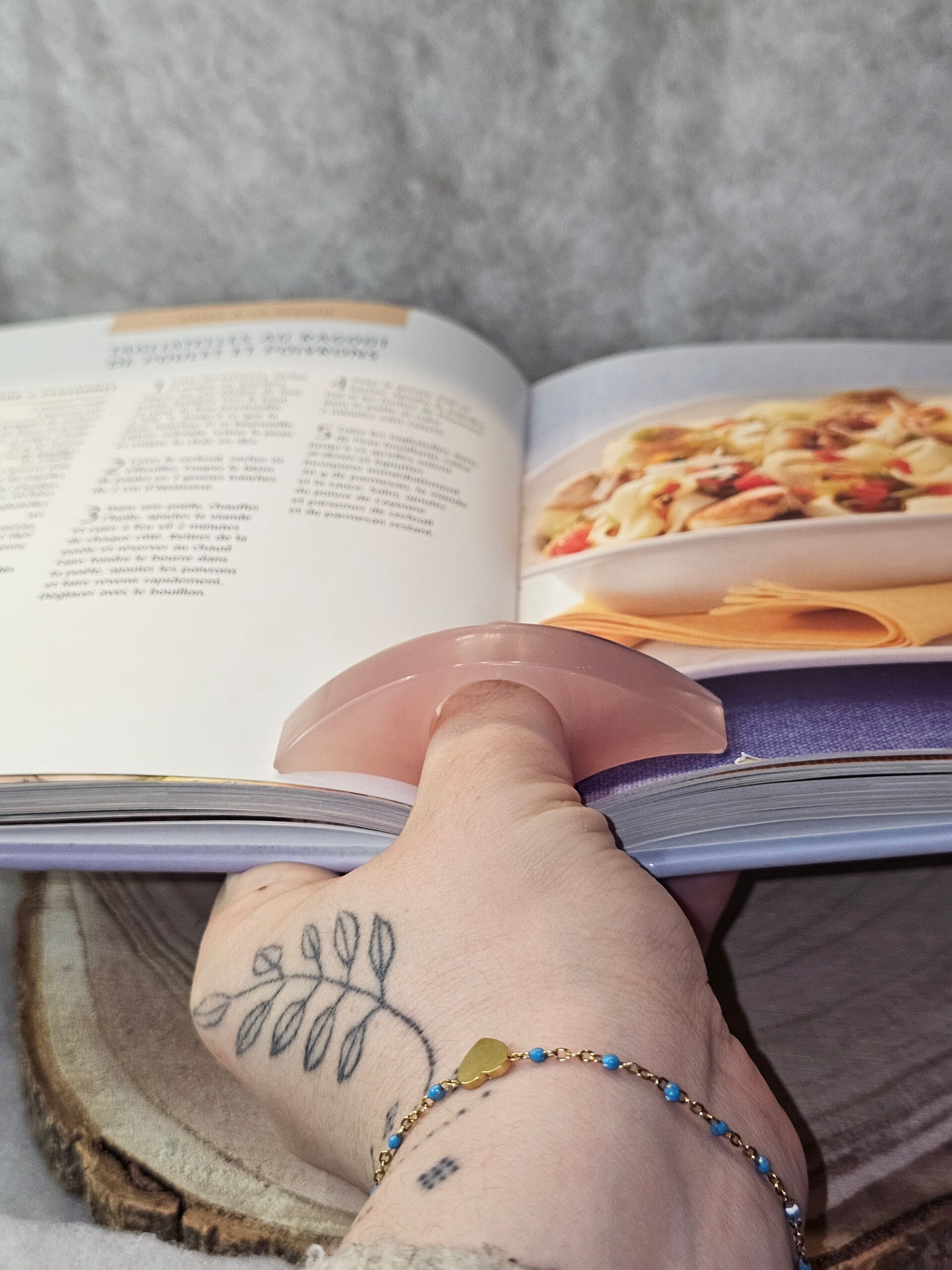 Plongez dans vos lectures avec style, grâce à notre support de lecture ergonomique en résine. Sa forme élégante et sa couleur rose scintillante le rendent non seulement pratique pour tenir votre livre d'une seule main, mais aussi un véritable accessoire de mode pour les amoureux des livres. Profitez d'un confort de lecture optimal et d'une touche d'éclat !