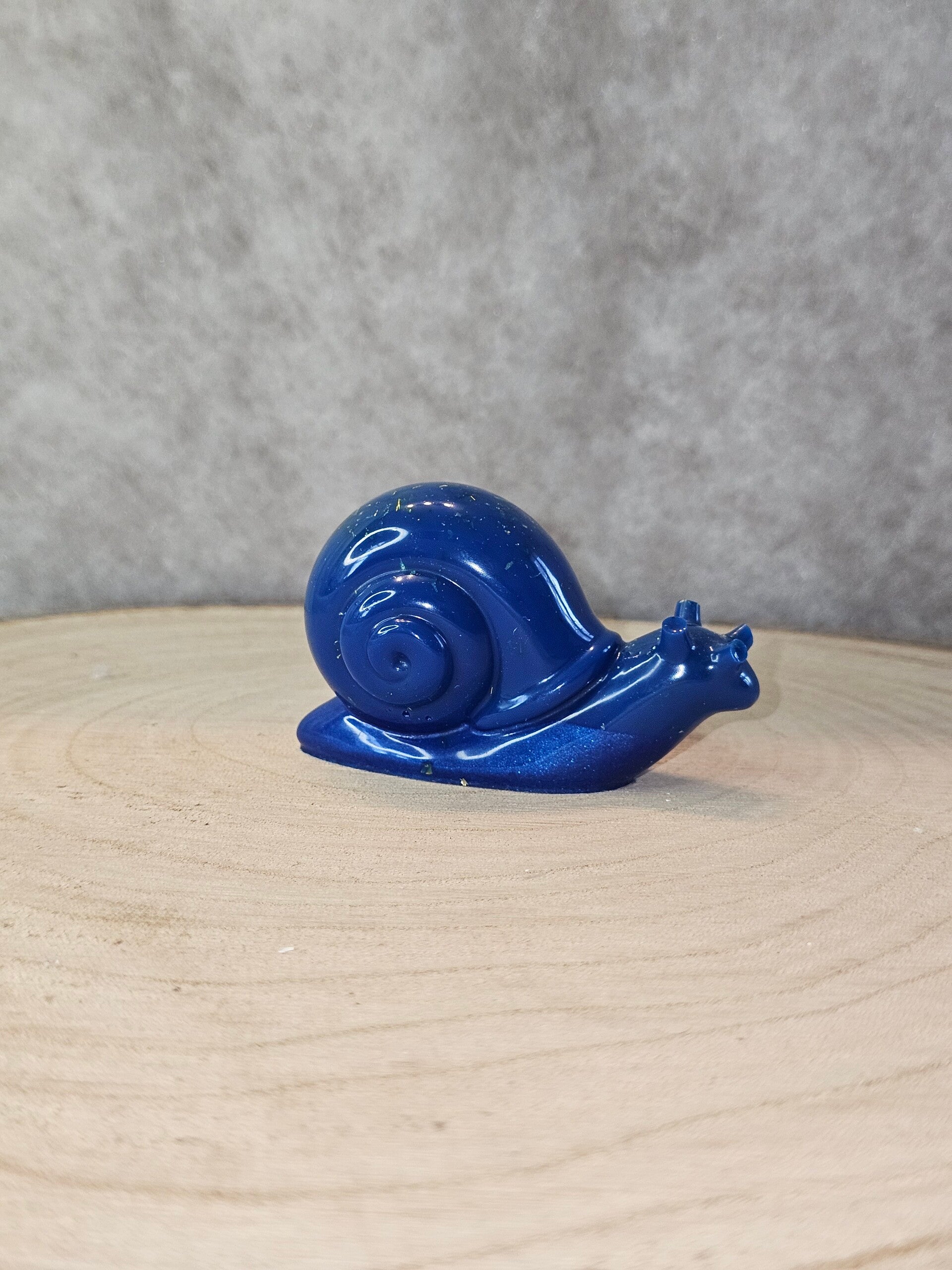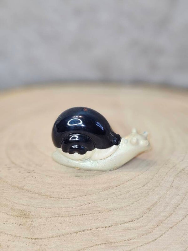 Forme et Texture : La coquille est bien bombée, lisse et présente une spirale moulée en relief, typique de la coquille d'escargot.