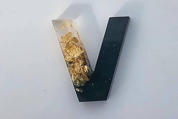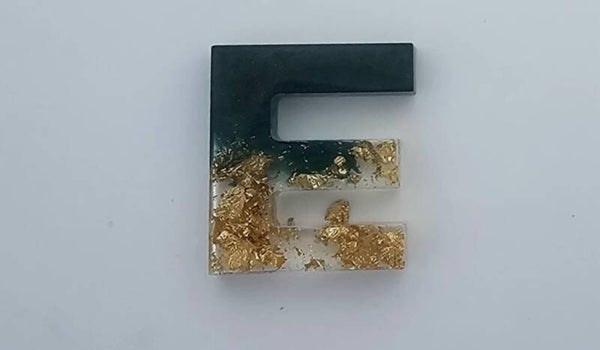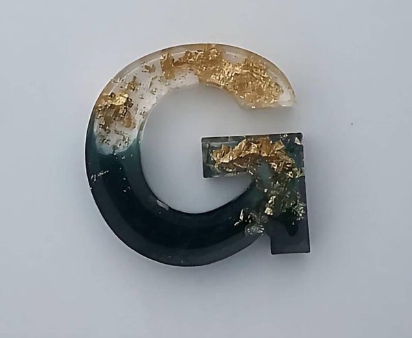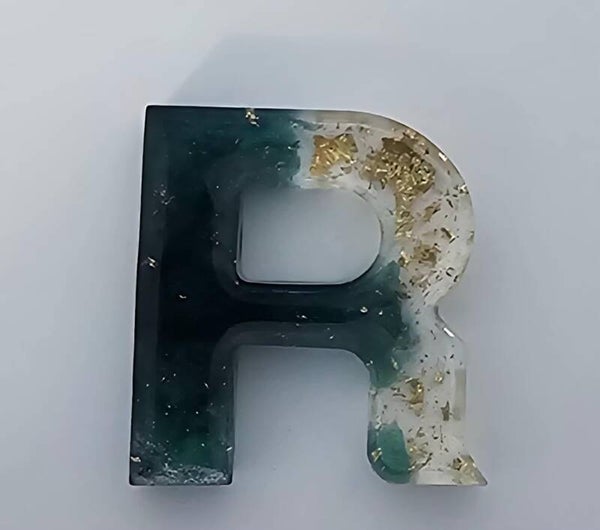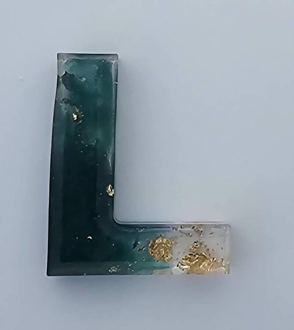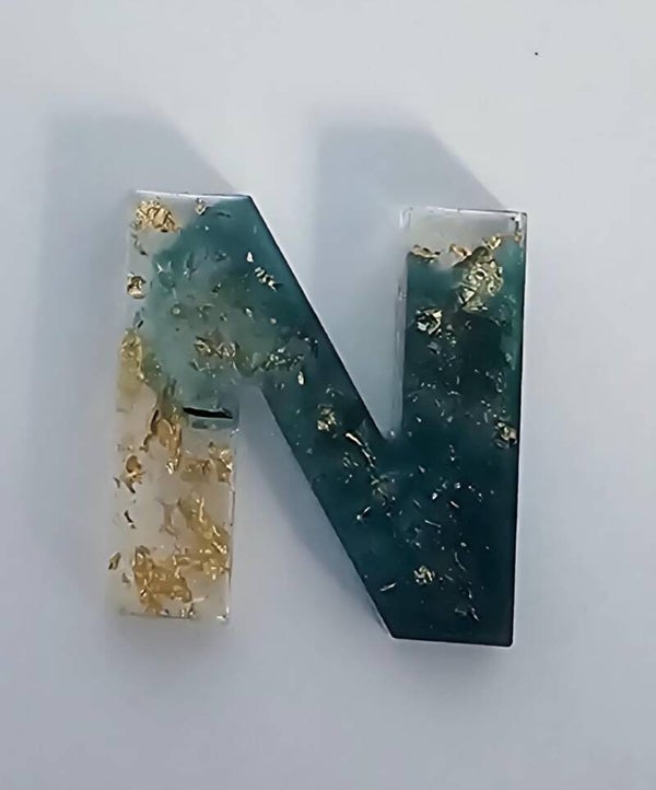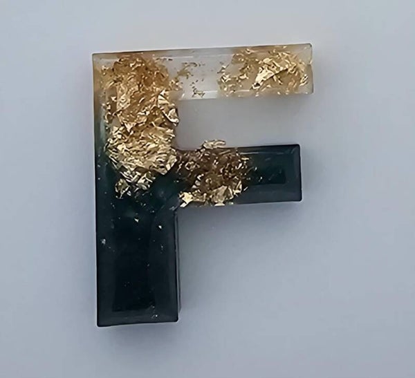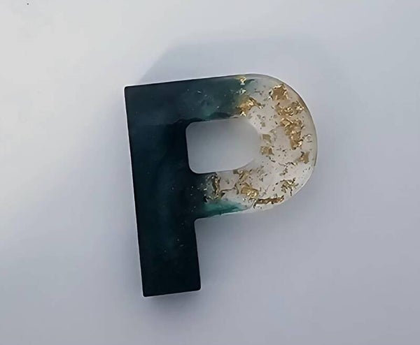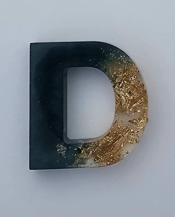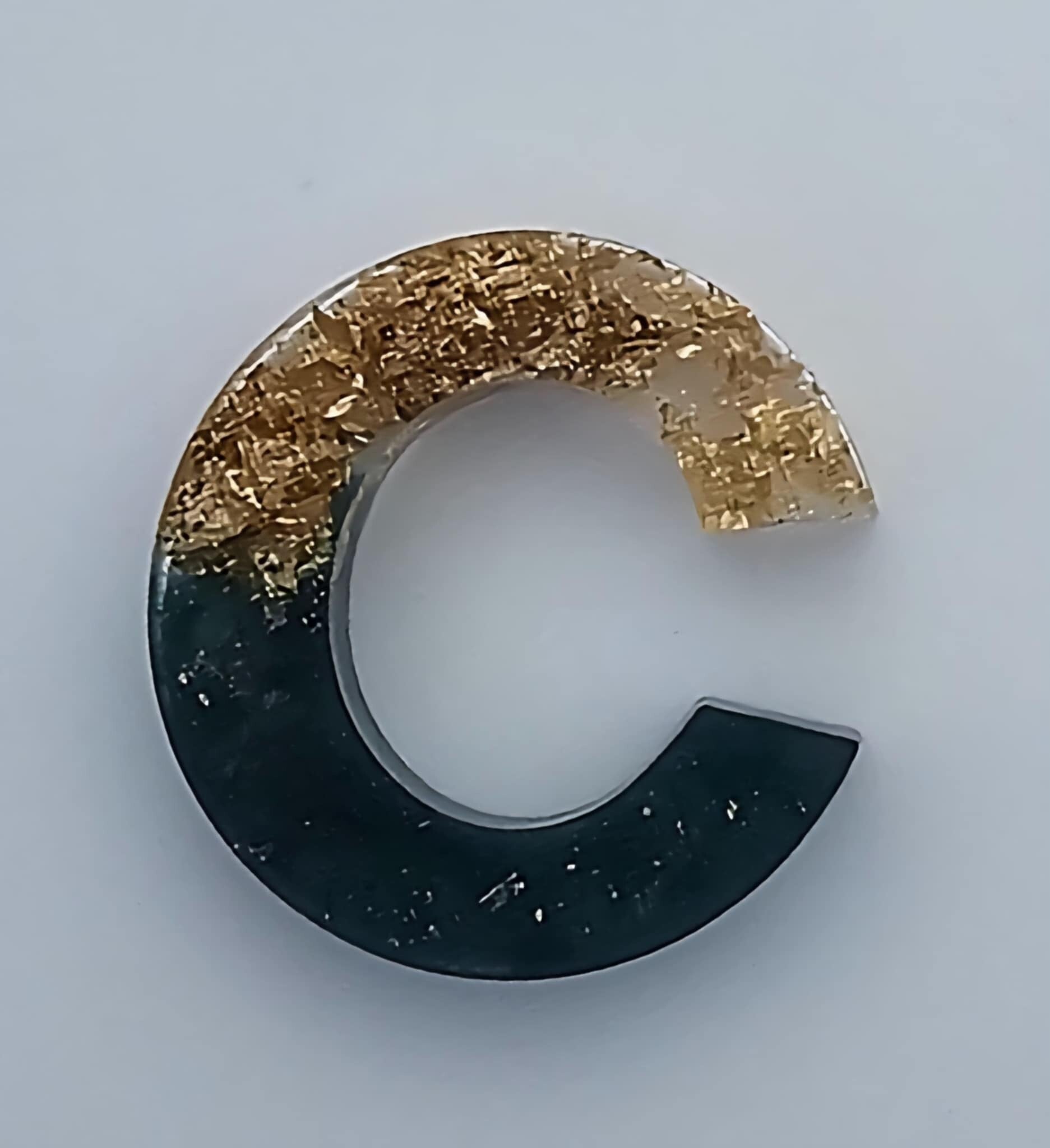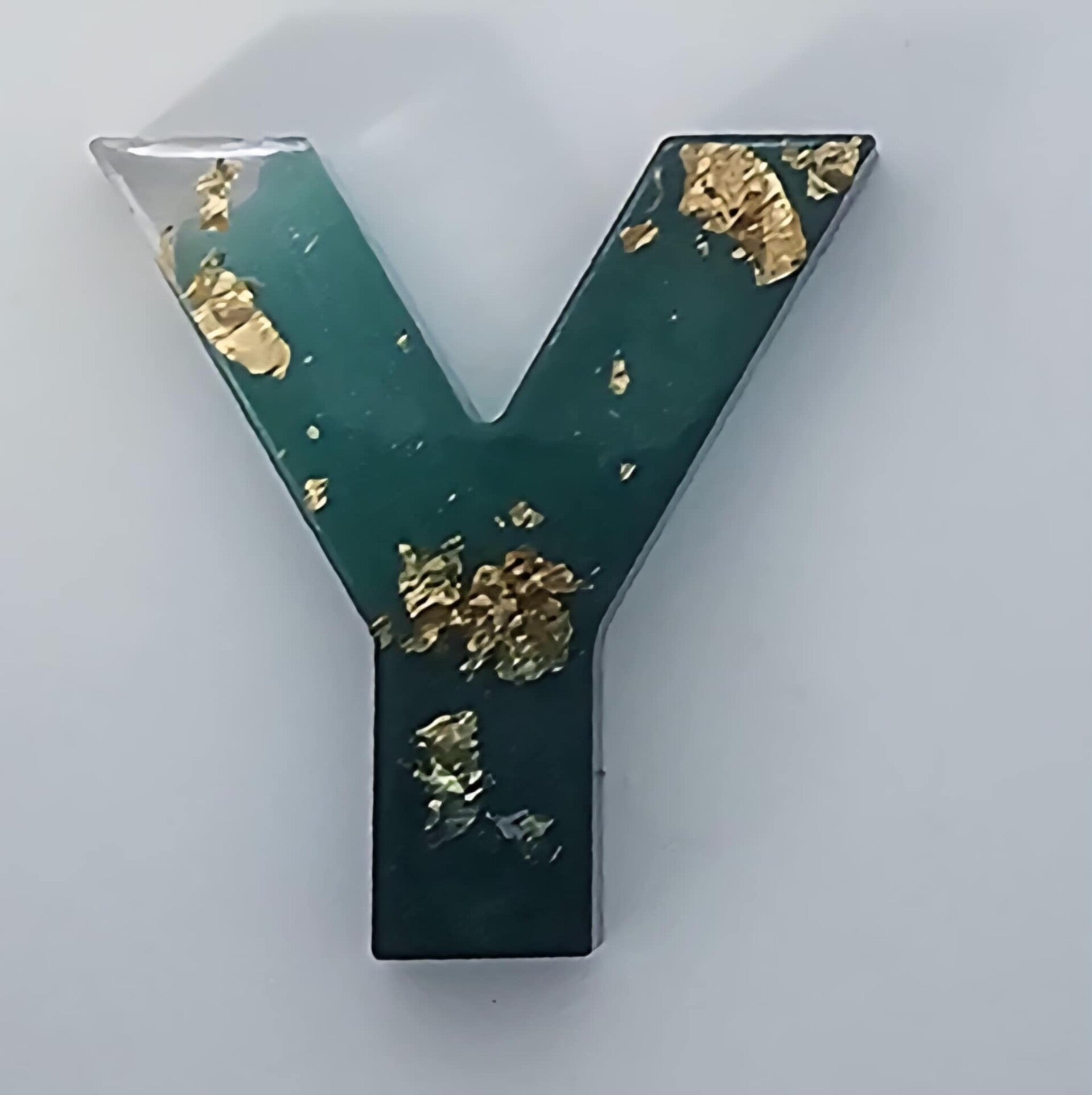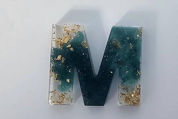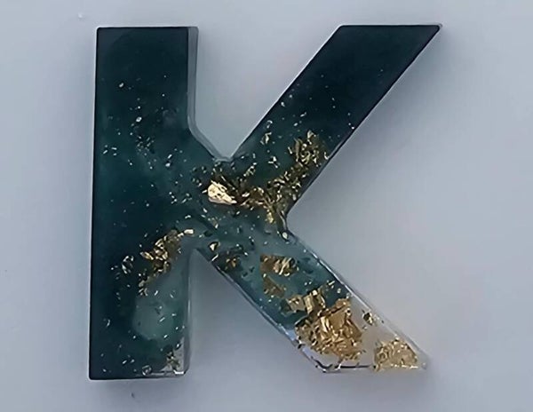 Remarque : Les autres lettres sont présumées suivre un style similaire, combinant une couleur vive (bleu) avec du blanc et de la feuille d'or.