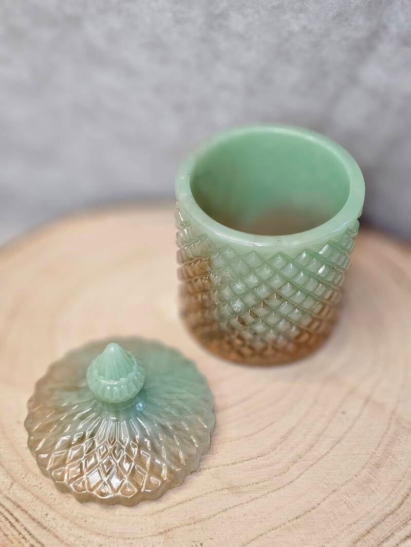 Style : Luxueux et texturé, imitant l'apparence des boîtes en verre taillé ou cristal coloré.