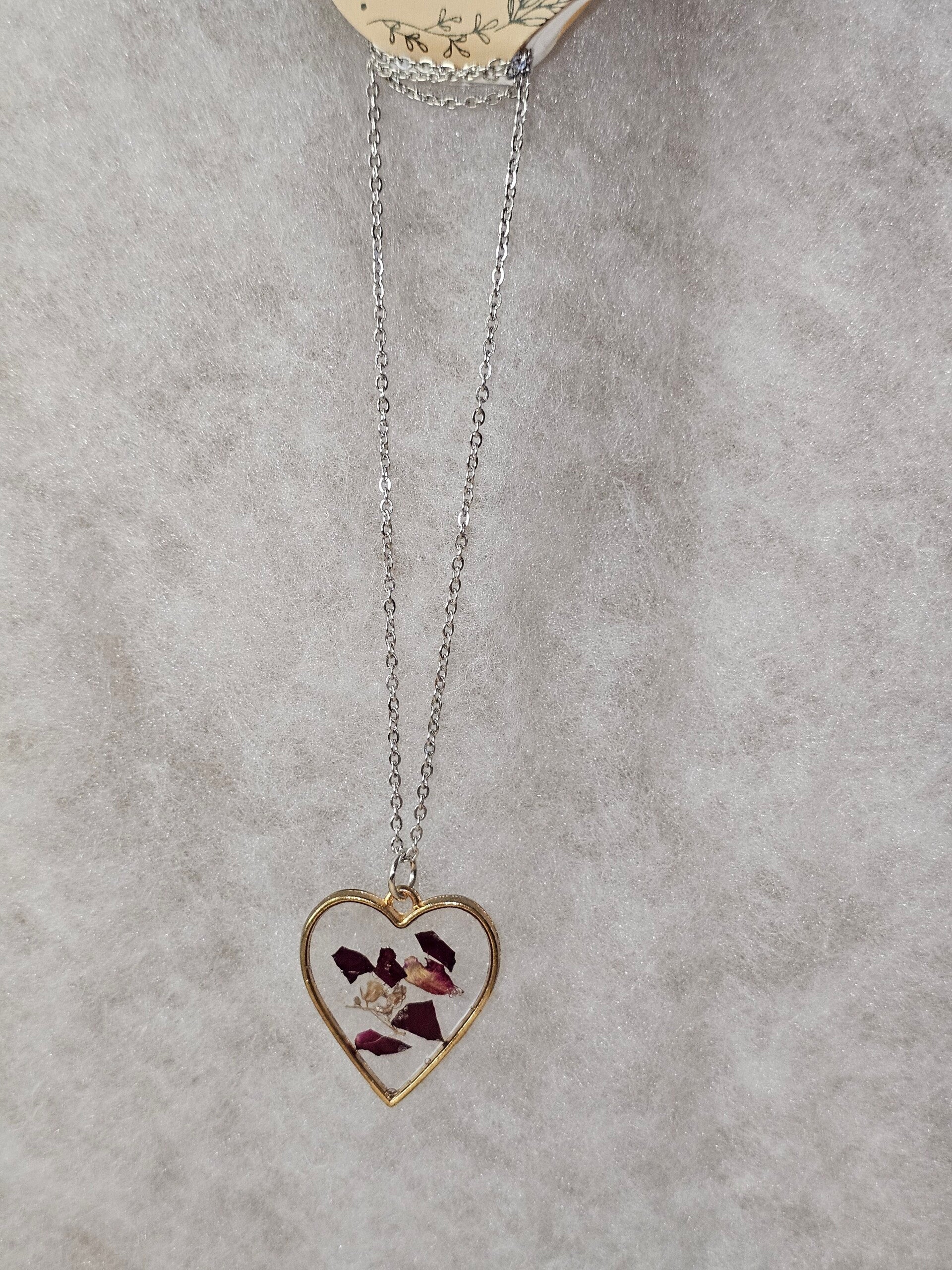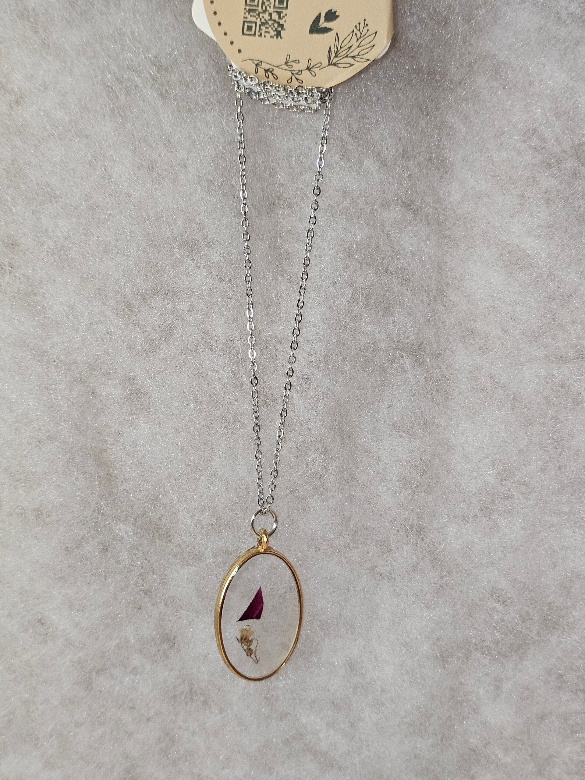 ✨ Collier fleurs séchées – Pendentif cœur / ovale ✨
